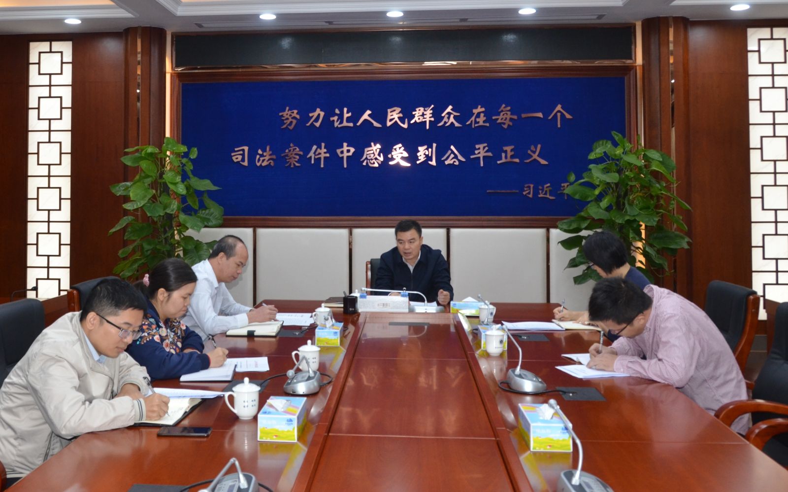 11月8日上午,市中级法院党组书记、院长熊正良召集纪检监察组、监察室全体干警专题研究工作,重点对今年廉洁司法“十个一”完成情况进行回顾检查。