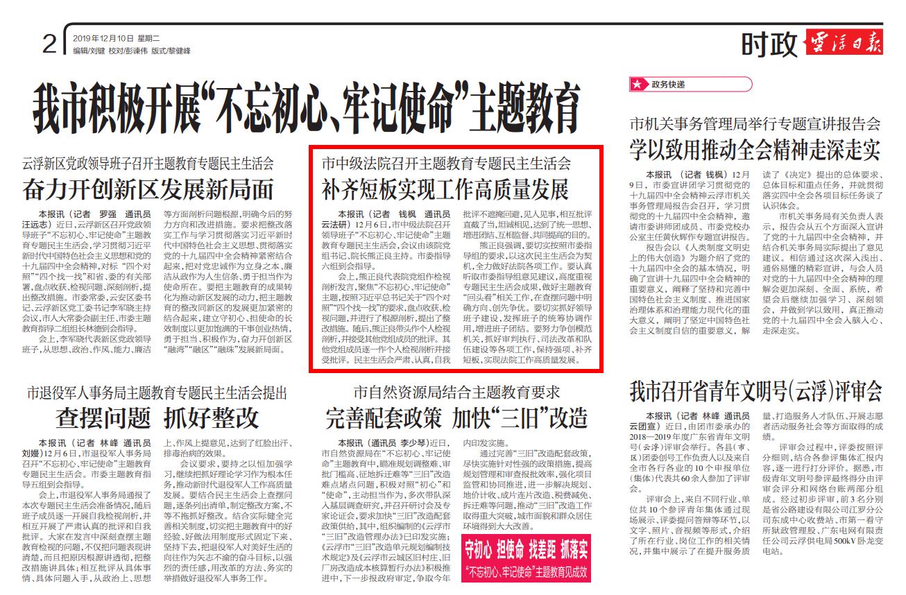 云浮日报:补齐短板实现工作高质量发展