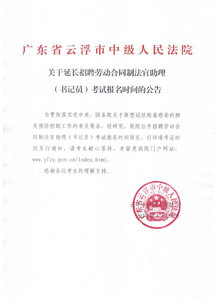 关于延长招聘劳动合同制法官助理(书记员)考试报名时间的公告