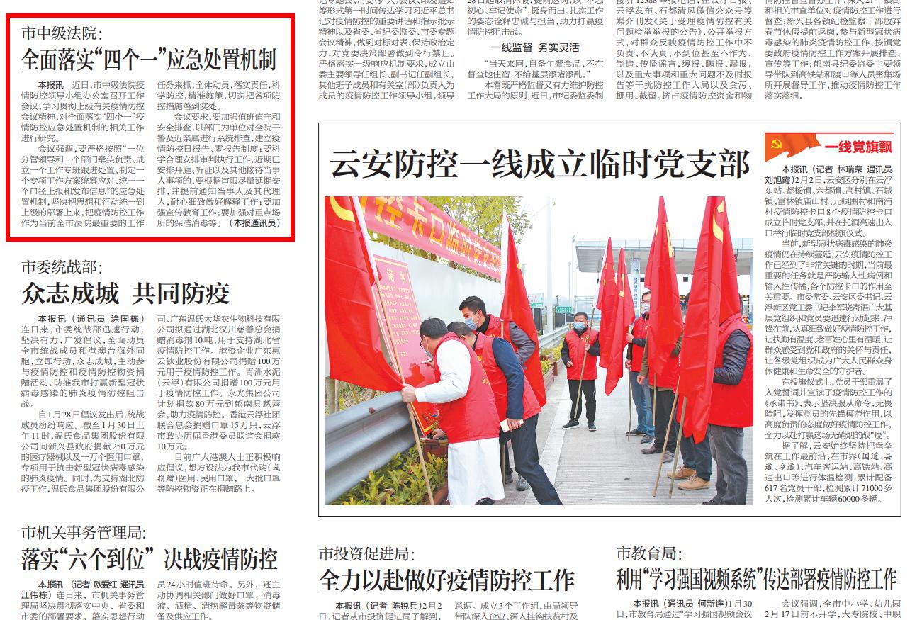 云浮日报:市中级法院全面落实“四个一”应急处置机制