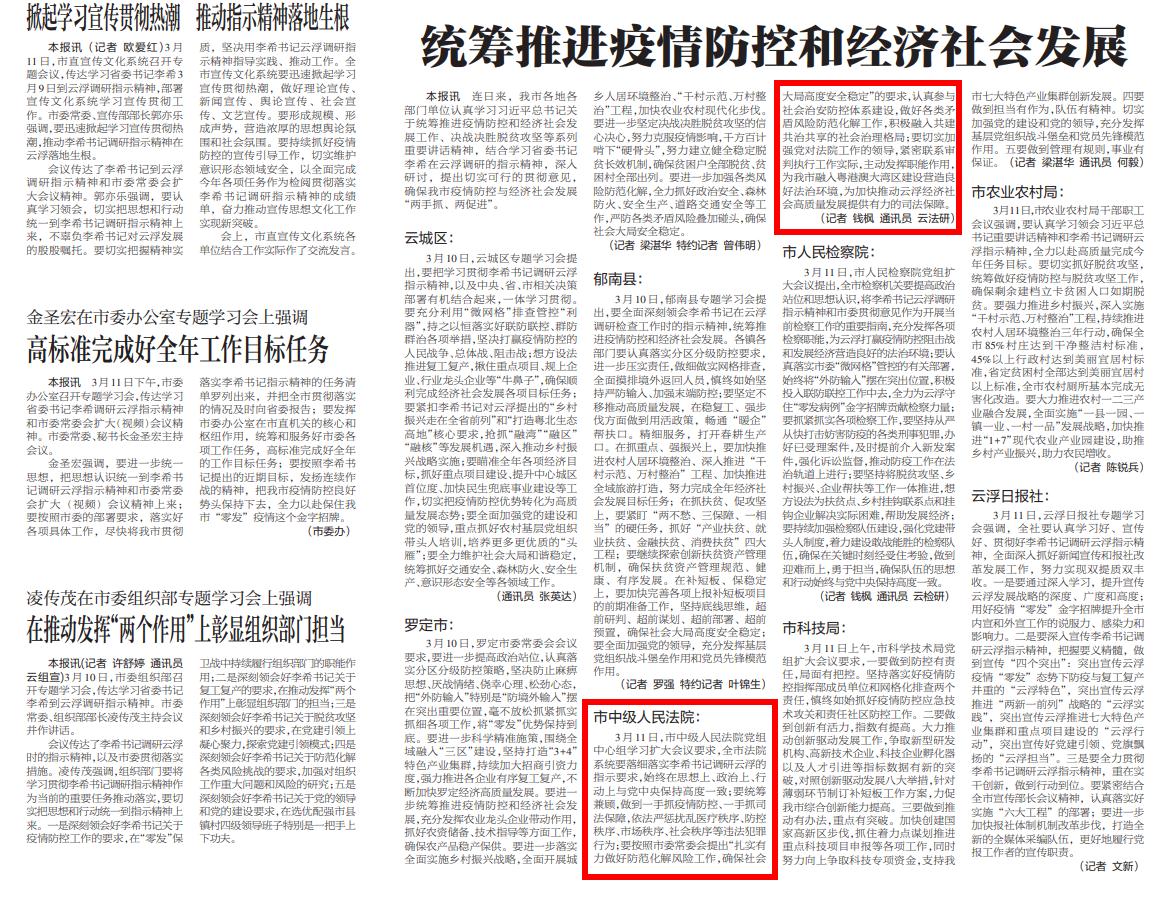 云浮日报:统筹推进疫情防控和经济社会发展