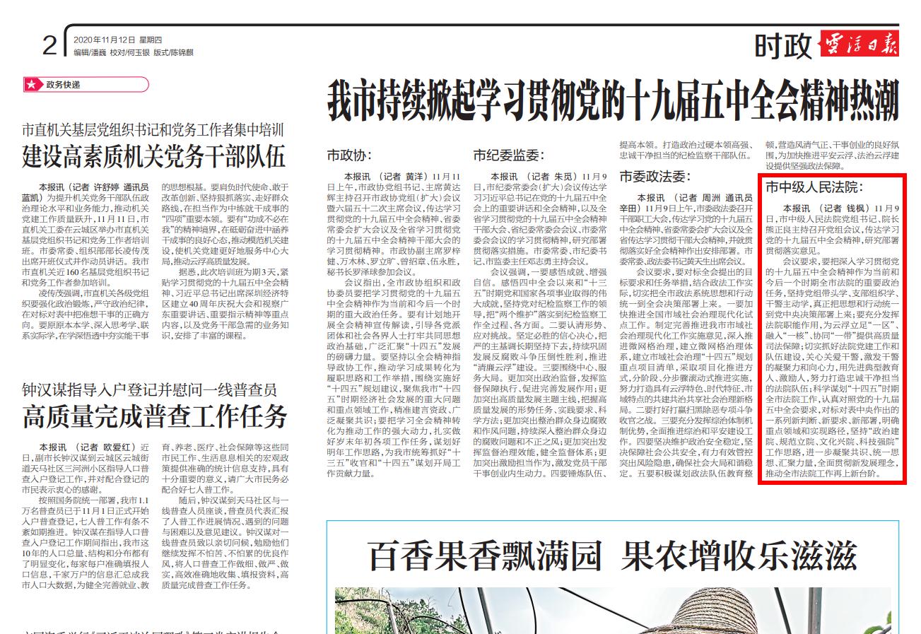云浮日报:我市持续掀起学习贯彻党的十九届五中全会精神热潮