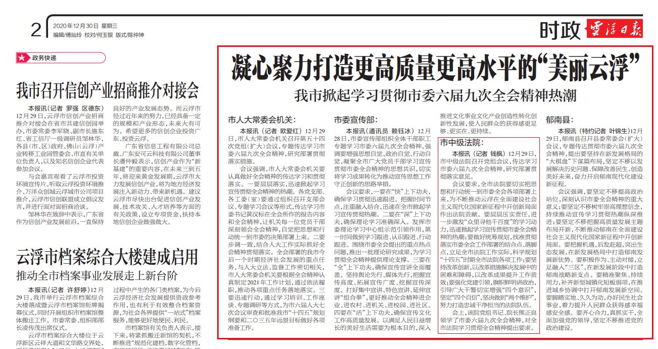 云浮日报:我市掀起学习贯彻市委六届九次全会精神热潮——凝心聚力打造更高质量更高水平的“美丽云浮”