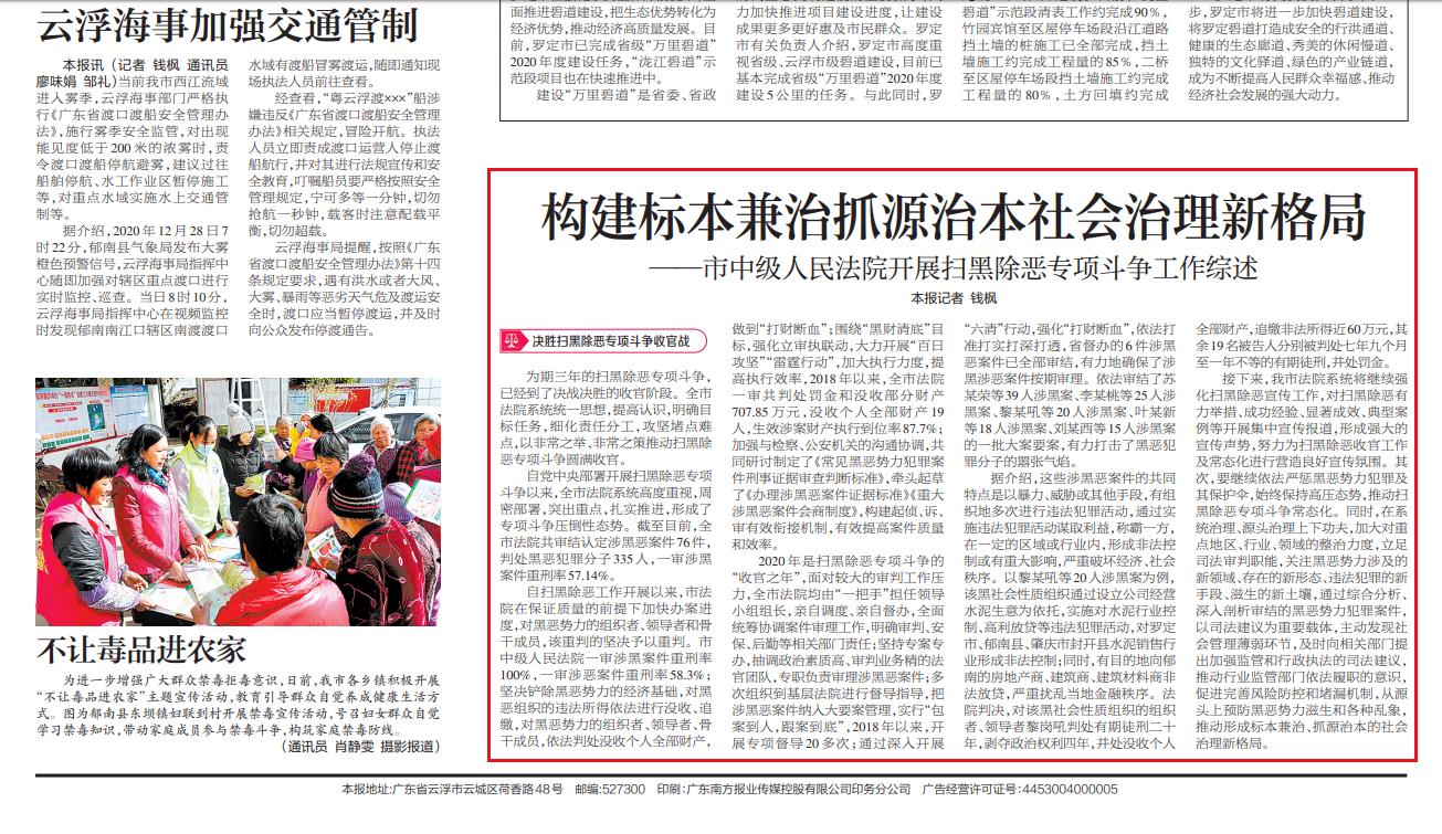 云浮日报:构建标本兼治抓源治本社会治理新格局——市中级人民法院开展扫黑除恶专项斗争工作综述