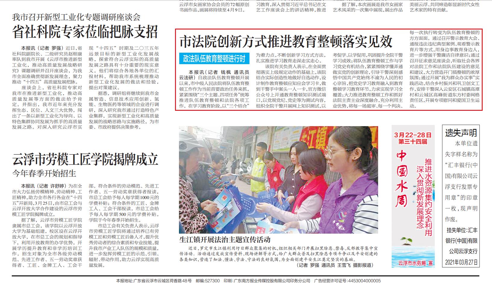 云浮日报:市法院创新方式推进教育整顿落实见效