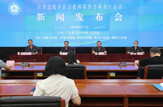 云浮市中级法院举行云浮法院涉农合机构案件专项执行活动新闻发布会