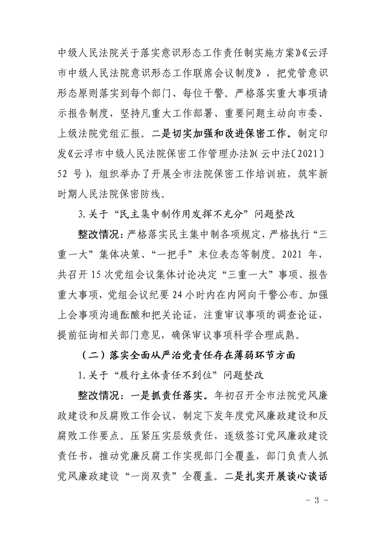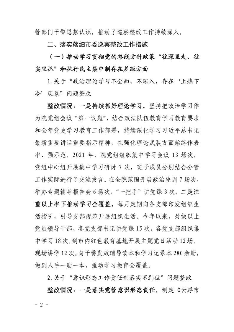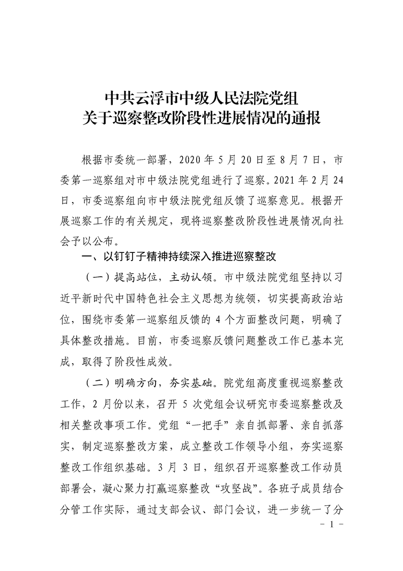 中共云浮市中级人民法院党组关于巡察整改阶段性进展情况的通报