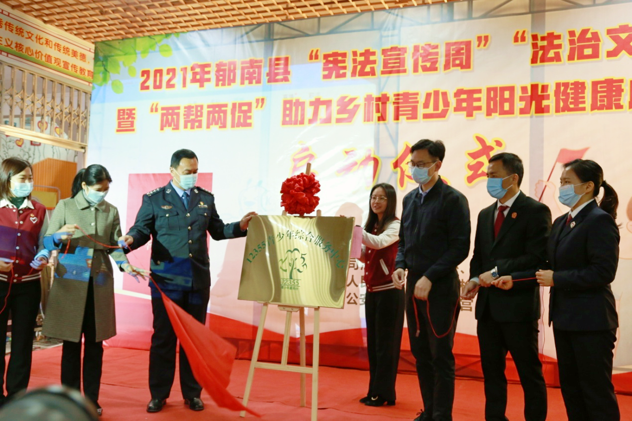 12月3日,郁南县委政法委、县法院、县检察院、县公安局、县司法局等多个部门联合举行“宪法宣传周”“法治文化节”暨“两帮两促”助力乡村青少年阳光健康成长行动。