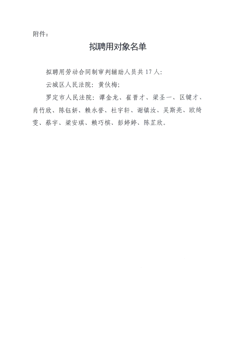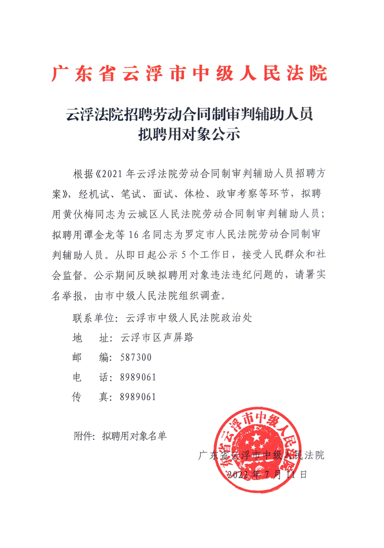 云浮法院招聘劳动合同制审判辅助人员拟聘用对象公示