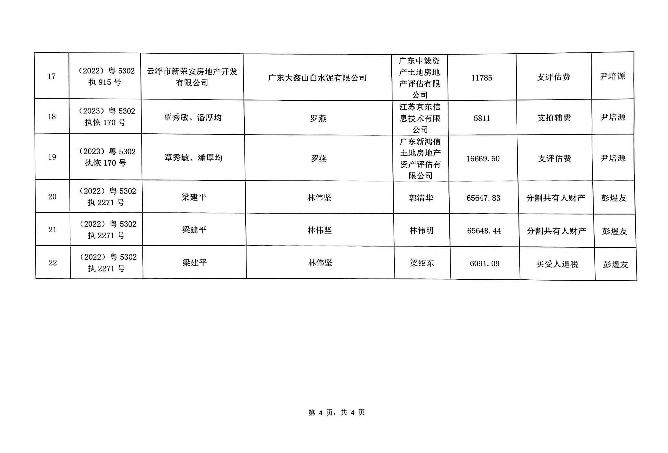 云浮市云城区人民法院向案外人发放执行案款的公告(2025)粤5302案款外发公告4号