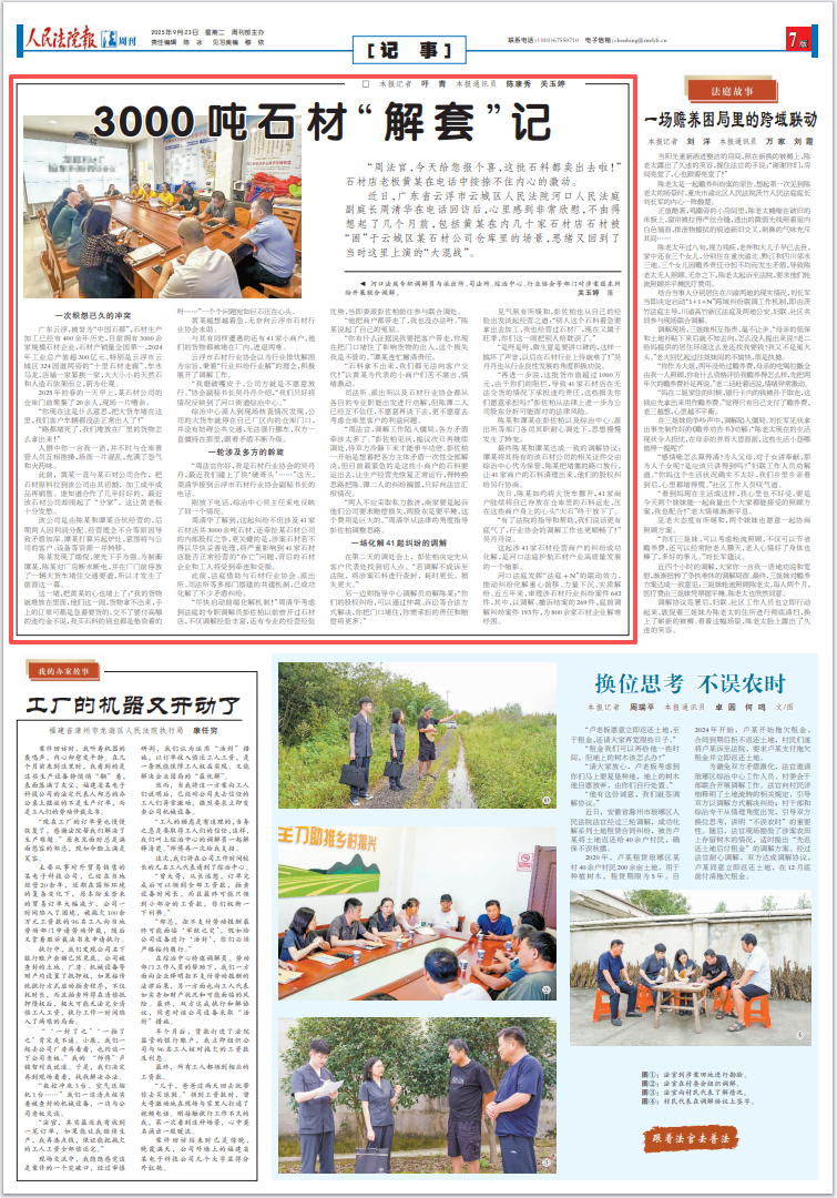 云城区法院一报道被《人民法院报》采用刊登:3000吨石材“解套”记