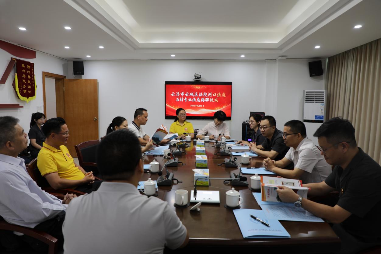 仪式结束后,与会人员先后参观了“石材专业法庭”、调解室、审判庭、党建活动阵地等场所,并听取河口法庭创建“枫桥式人民法庭”工作纪实,直观了解法庭在打造“石材专业法庭”、提升审判质效、推行先行调解等方面的积极举措和实践成效。商会代表们还围绕如何加强沟通联络、共同推进云浮石材产业高质量发展进行座谈交流。