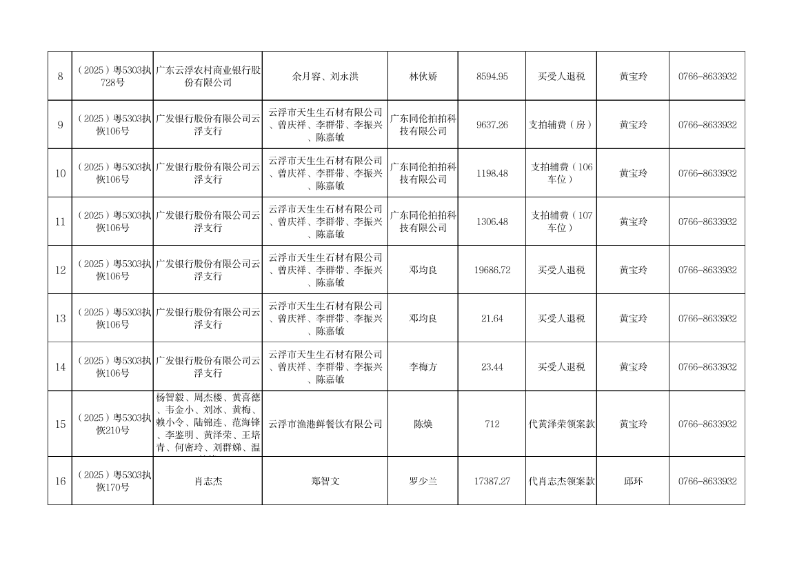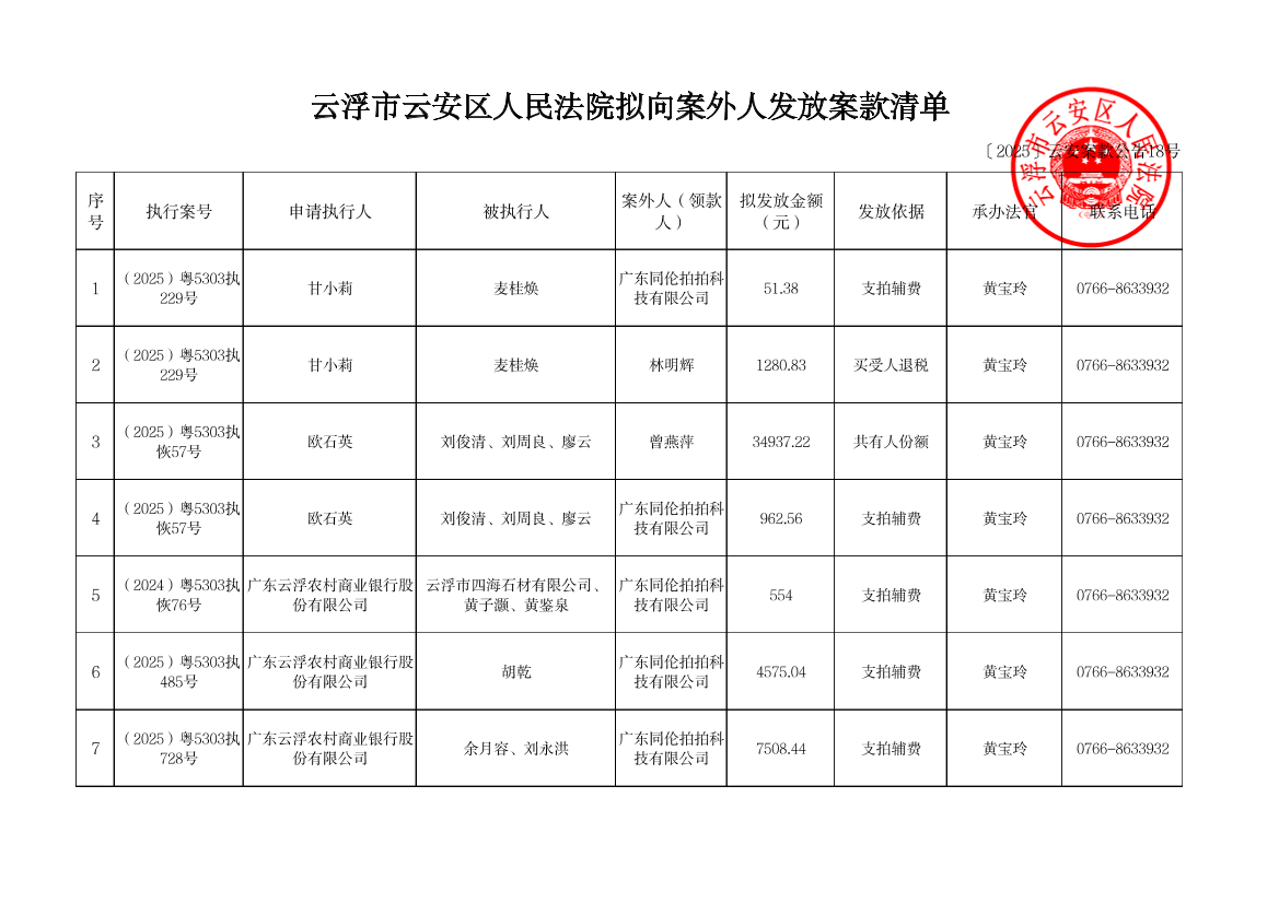 云浮市云安区人民法院拟向案外人发放案款的公告〔2025〕云安案款公告18号