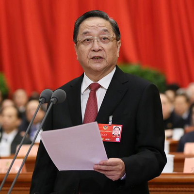 各位委员、同志们!团结成就伟业,奋斗实现理想。让我们更加紧密地团结在以习近平同志为总书记的中共中央周围,高举中国特色社会主义伟大旗帜,同心协力,顽强拼搏,不断推进人民政协事业发展,为全面建成小康社会、实现中华民族伟大复兴中国梦而努力奋斗!