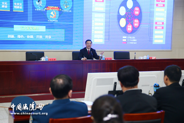 图为周强院长在国家法官学院春季开学典礼上为学员授课。孙若丰 摄
