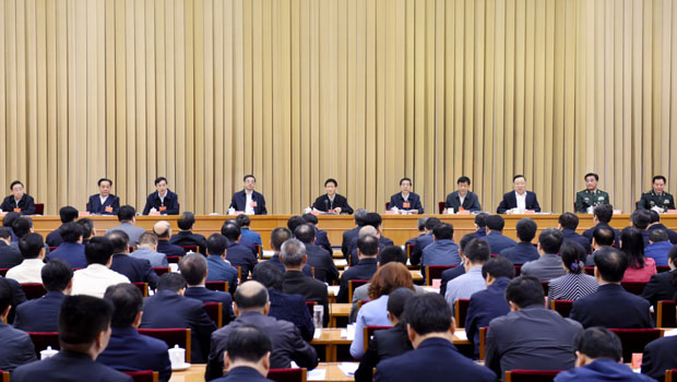 国务委员、中央政法委副书记、公安部部长郭声琨主持会议。最高人民法院院长周强、最高人民检察院检察长曹建明,中央政法委委员汪永清、耿惠昌、吴爱英、陈训秋、王宁、傅政华、李晓峰出席会议。