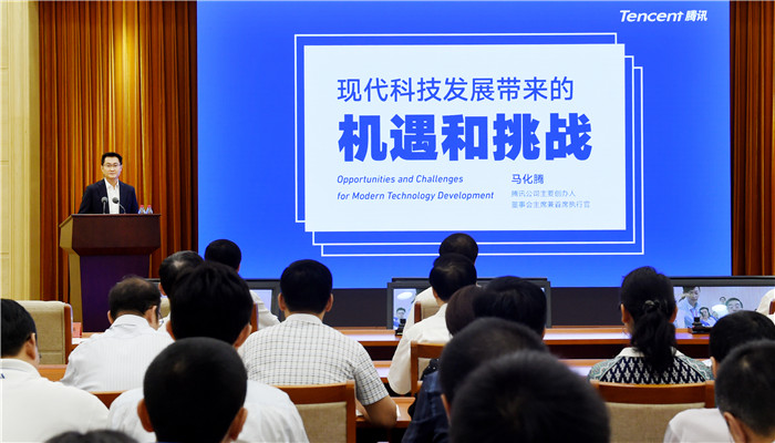 6月9日,中央政法委举行百万政法干警学习讲座,腾讯公司董事会主席兼首席执行官马化腾就“现代科技发展带来的机遇和挑战”作讲解。郝帆摄