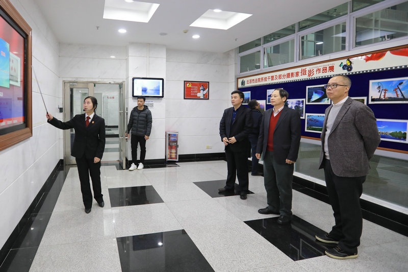省考评组先后参观了诉讼服务中心、法警支队、法治教育走廊、第一审判庭、法文化大堂、信息集控中心等地。随后在六楼多功能室观看了我院专题宣传片,听取了熊正良院长对全市法院开展平安建设、法治广东建设的简要情况汇报。