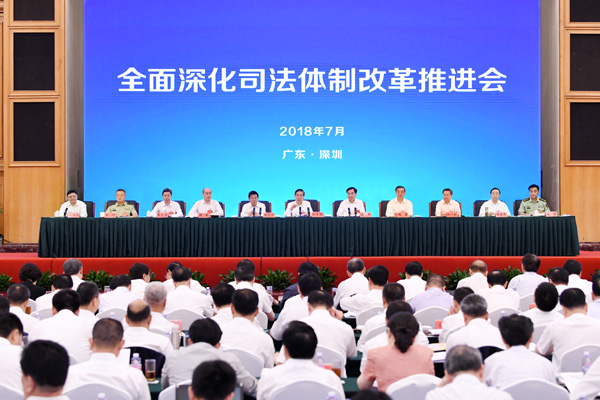 7月24日,全面深化司法体制改革推进会在深圳召开,中共中央政治局委员、中央政法委书记郭声琨出席并讲话。他强调,要坚持以习近平新时代中国特色社会主义思想为指引,增强“四个意识”,坚持党的绝对领导、坚持以人民为中心,积极探索组织科学化、运行高效化、履职专业化、保障现代化,加快构建中国特色社会主义司法制度体系,推动政法事业实现新飞跃、依法治国取得新进步。