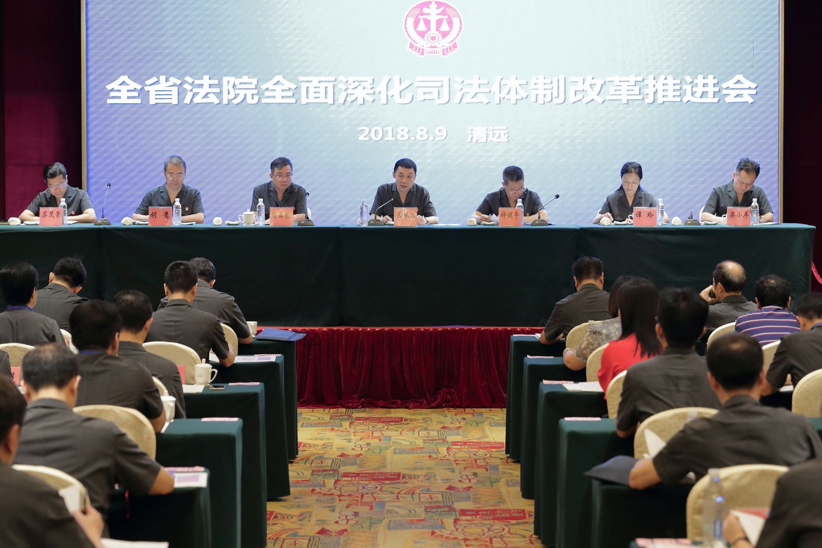 9日上午,广东法院全面深化司法体制改革推进会在清远召开。广东省高级人民法院院长龚稼立强调,要坚持问题导向倒逼深化改革,强化责任担当推进改革,真刀真枪推动改革攻坚,抓紧抓实广州互联网法院等新一轮司法改革任务落地见效。清远市市长黄喜忠出席会议并致辞。