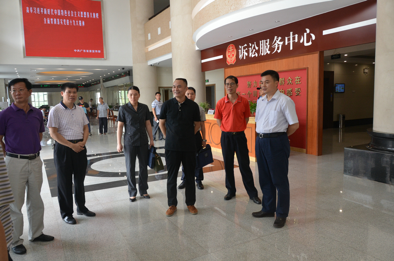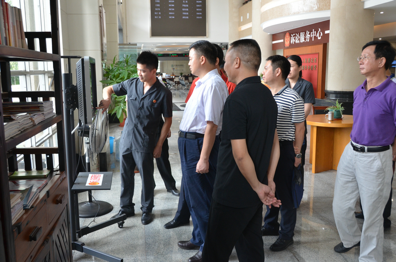 熊正良院长认真检查了罗定法院诉讼服务中心的场地、设施及服务设备。通过详细的察看和测试,熊正良院长对罗定法院诉讼服务中心大到绿化、信息化设备运行,小到书籍摆放等都一一提出了具体指导意见。