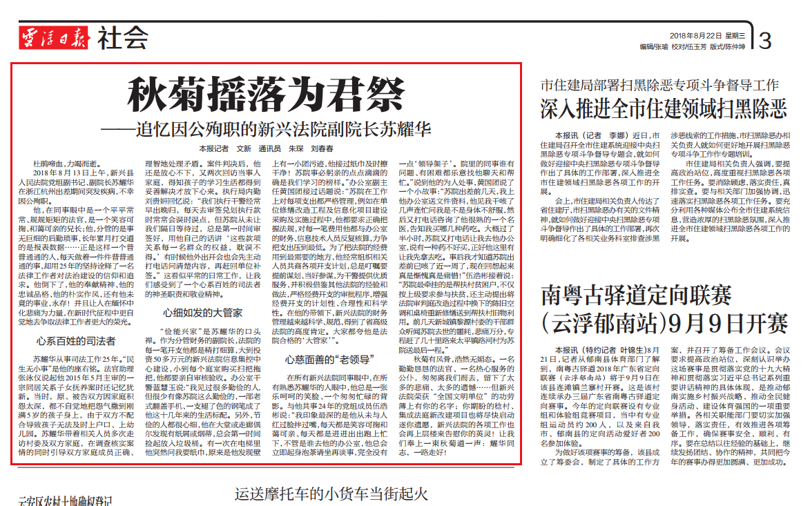 《云浮日报》刊登追忆新兴法院副院长苏耀华文章