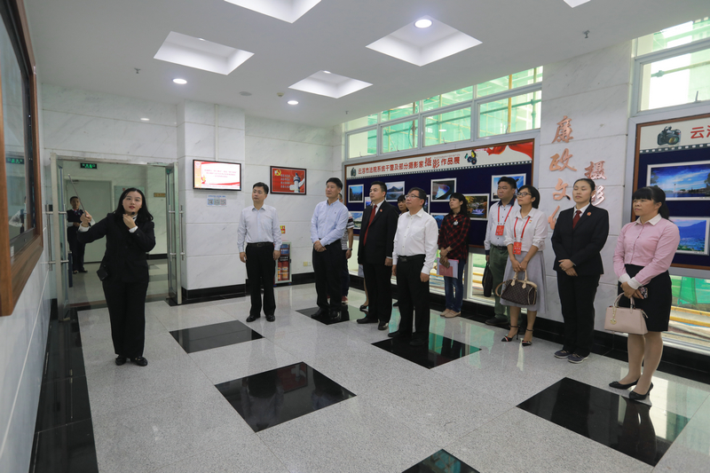 在熊正良院长的引导下,省法院杨正根副院长与代表、委员一行先后参观了中院诉讼服务中心、审判法庭、法文化大堂、智慧党建室、院史馆等场所,观看了云浮中院宣传片,实地了解并感受法院在信息化建设、文化建设等方面的情况。