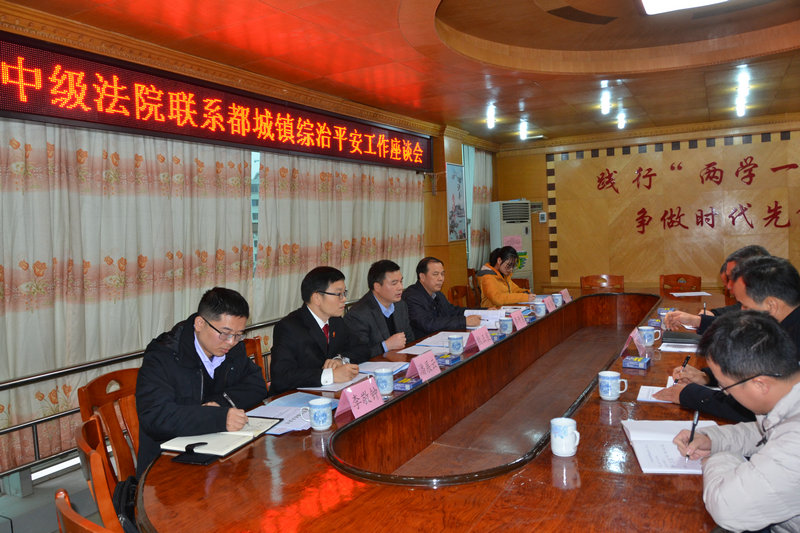 座谈会上,罗荣灿书记简要汇报了都城镇平安建设、扫黑除恶等工作情况。熊正良院长结合都城镇综治工作现有情况提出三点建议:一是继续加大工作力度,认真做好综治平安建设各项工作,为即将开展的综治考评打好基础、做好准备;二是加大宣传力度,建议通过微信、宣传屏等对综治平安建设工作进行多渠道、多途径的宣传,进一步提高群众的安全感和满意度;三是按照市综治办的通知要求,共同在春节前掀起一轮综治平安扫黑除恶宣传热潮,为群众过上一个欢乐祥和平安的佳节造势暖心。