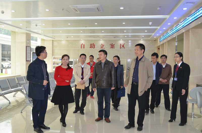 在肇庆中院,熊正良院长一行在肇庆中院陈陟云院长引导下,实地参观了该院诉讼服务中心、数字法庭等场所,随后双方围绕机关党的建设、法院文化建设、信息化建设等方面进行了座谈,就进一步加强沟通联系、互相学习交流达成广泛共识。