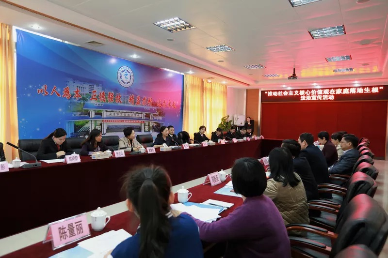随后,谭玲一行来到云浮技师学院,开展以“推动社会主义核心价值观在家庭落地生根”为主题的法治宣传活动。谭玲参观了云浮青少年法治教育实践基地,对该基地模拟法庭建设提出指导意见,并与该校女职工、女学生代表召开座谈会,就女性权益保护、反家暴等主题进行座谈。她认真听取并回答了与会人员的提问,就进一步提高女性维权意识、增强自我保护能力、化解家庭矛盾纠纷提供了专业意见。谭玲还代表省法院向云浮技师学院赠送了《法庭》杂志等法律刊物和普法读物,她在讲话中希望各级法院继续加强与学校之间的协作,增强各方联动,通过开展形式多样的普法活动增强学生的法治观念和守法意识,让法治信仰深入人心,法治精神广泛弘扬。