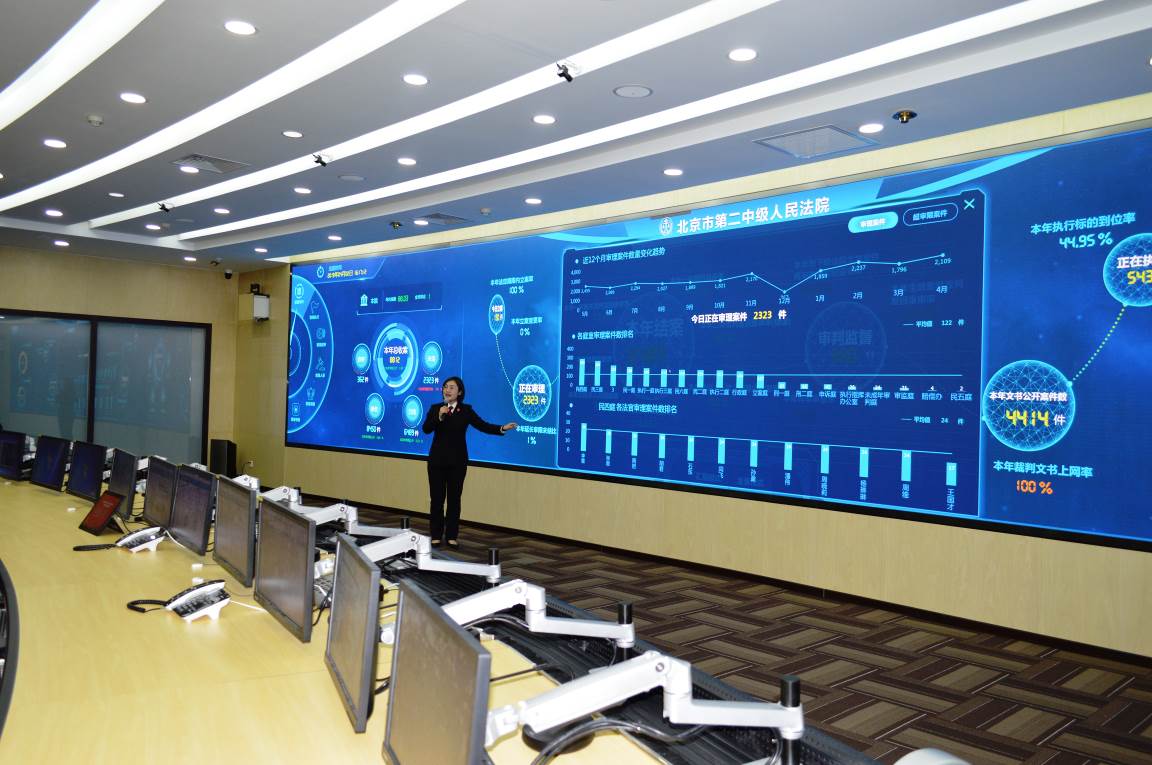 在北京二中院,在该院鲁桂华院长的陪同下,熊院长一行参观了该院诉讼服务中心、审判法庭、信息集控中心、文化长廊,详细了解了语音识别系统、执行系统、审判管理系统等建设和运行情况。