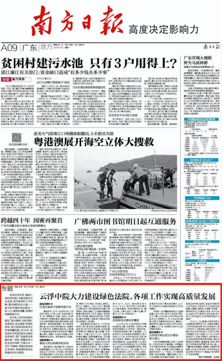 422日,《南方日报》第A09版刊登了我院建设绿色法院工作纪实。