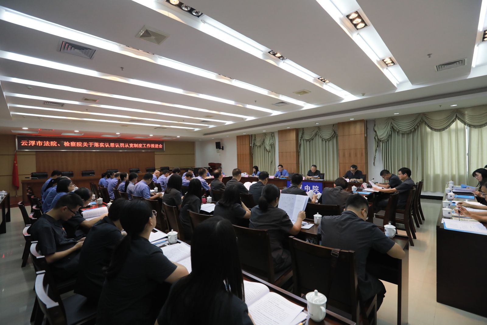 为落实落细修改后刑事诉讼法关于认罪认罚从宽制度的规定,共同探讨如何进一步推进认罪认罚从宽制度适用工作,8月6日,全市法院、检察院召开关于落实认罪认罚从宽制度工作推进会。市中级法院党组成员、副院长黄志辉、市检察院党组成员、副检察长黄亦乾出席会议并发表讲话,全市法院、检察院分管院领导、员额法官、检察官、法官助理共70余人参加会议。