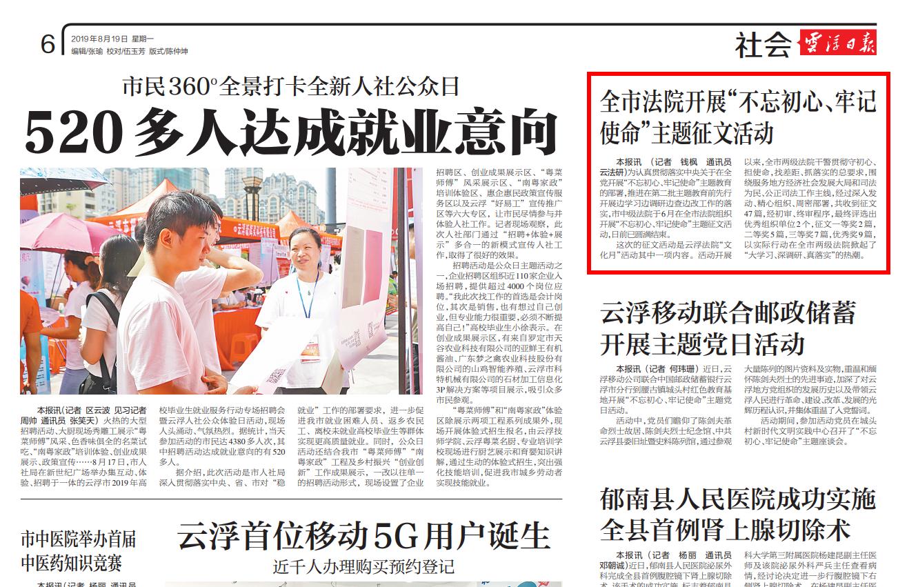 云浮日报:全市法院开展“不忘初心、牢记使命”主题征文活动