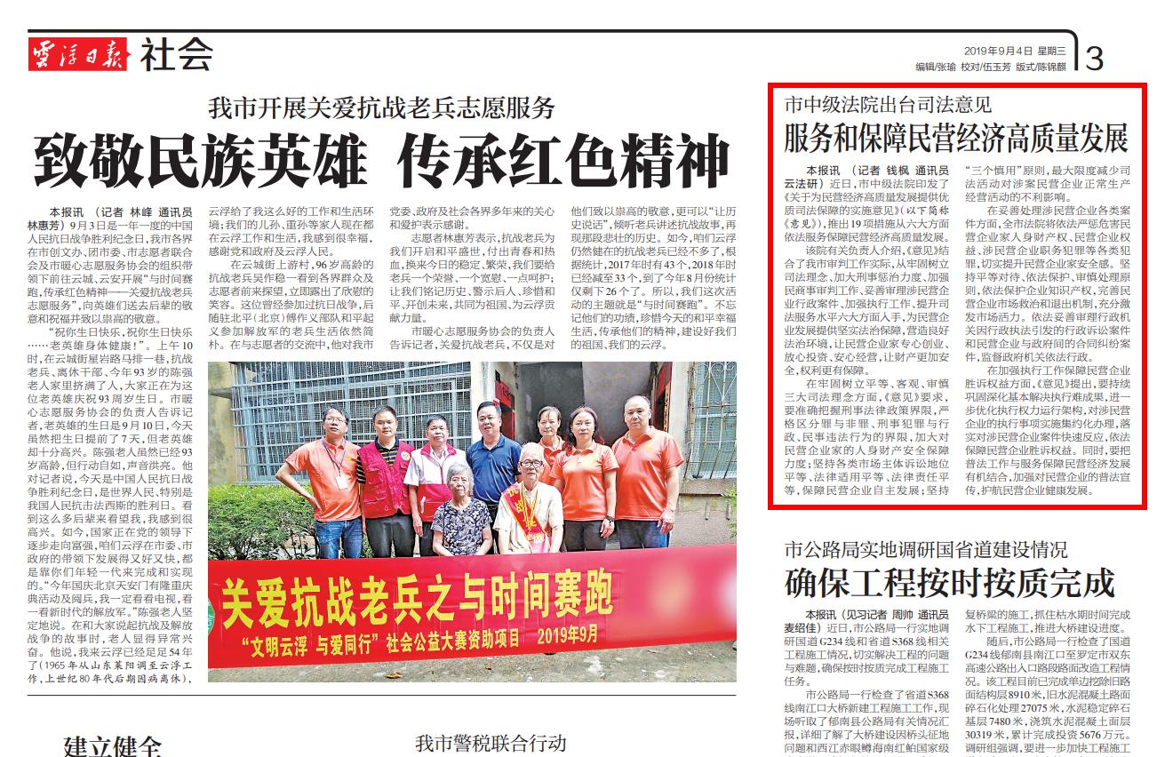 云浮日报:市中级法院出台司法意见 服务和保障民营经济高质量发展