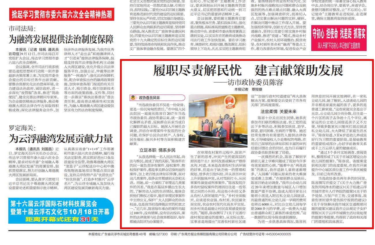 云浮日报:履职尽责解民忧 建言献策助发展——访市政协委员陈容