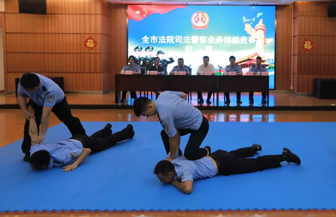 此次业务技能竞赛共设置5个比赛项目,分别为司法警察理论知识考试、安全检查、徒手防卫与控制—应用技能、擒敌拳及体能(1000米/800米跑)。