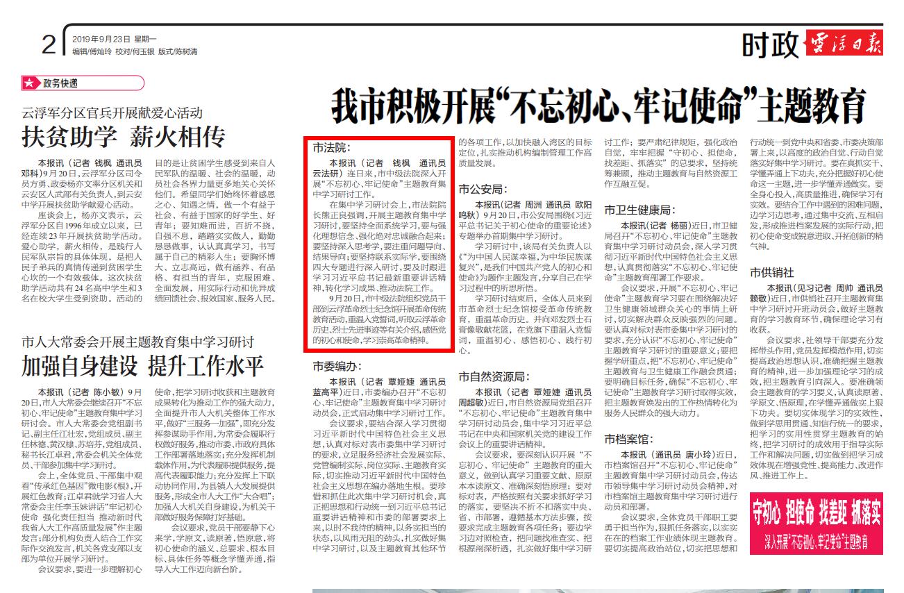 云浮日报:市法院积极开展“不忘初心、牢记使命”主题教育