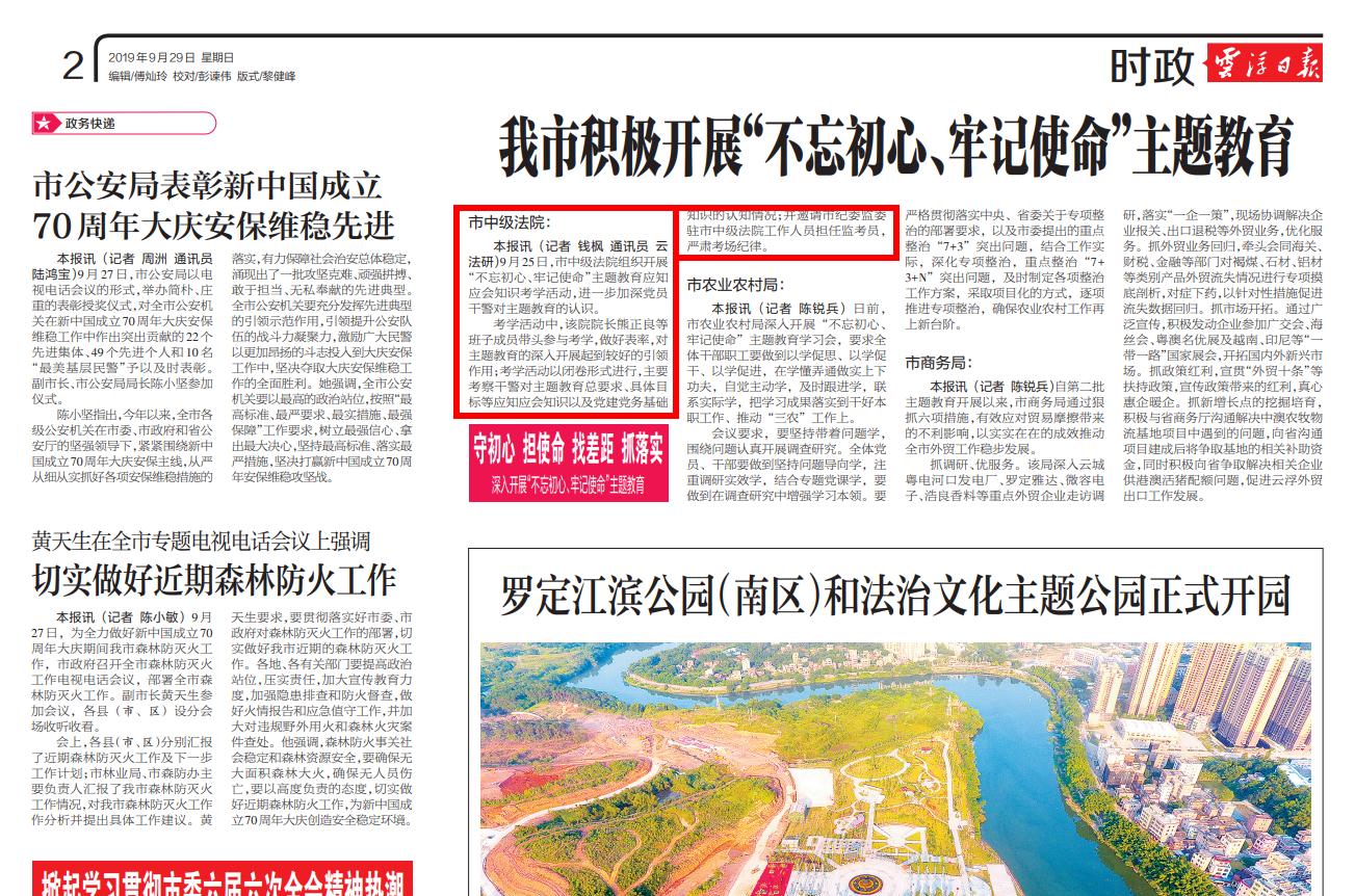 云浮日报:我市积极开展“不忘初心、牢记使命”主题教育
